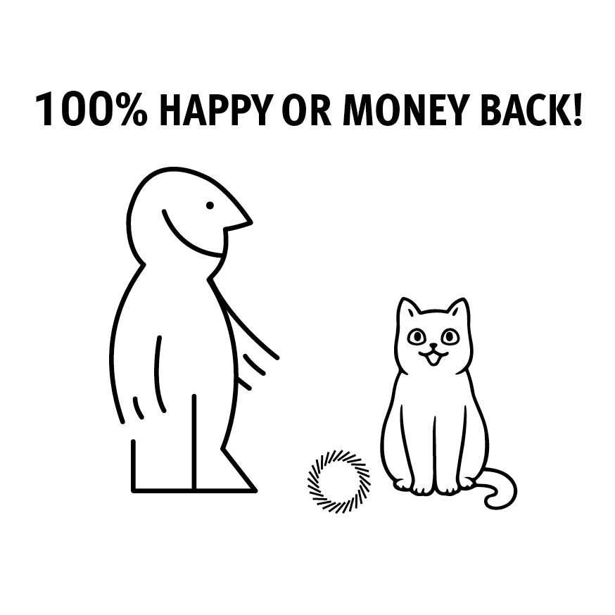 Katzen haben (je nach Rasse, Alter oder Geschlecht) unterschiedliche Vorlieben und Geschmäcker. Wenn Deine Katze das neue Spielzeug aus irgendeinem Grund nicht mag, senden wir Dir ein anderes Produkt oder erstatten Dir den Kaufpreis. Du kannst unser Katzenspielzeug also völlig risikofrei testen!